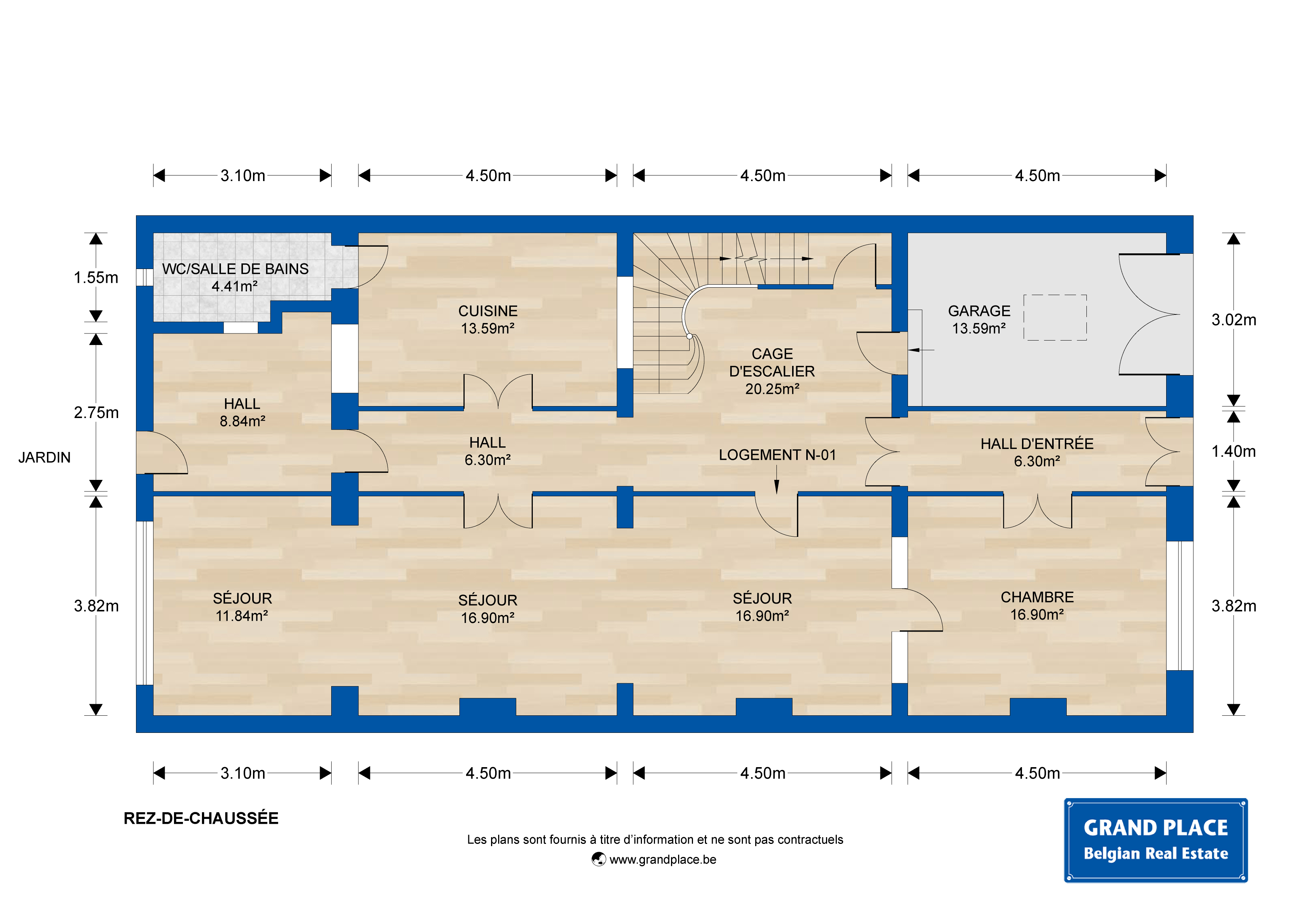 Rez-de-chaussée (+/- 159 m²)