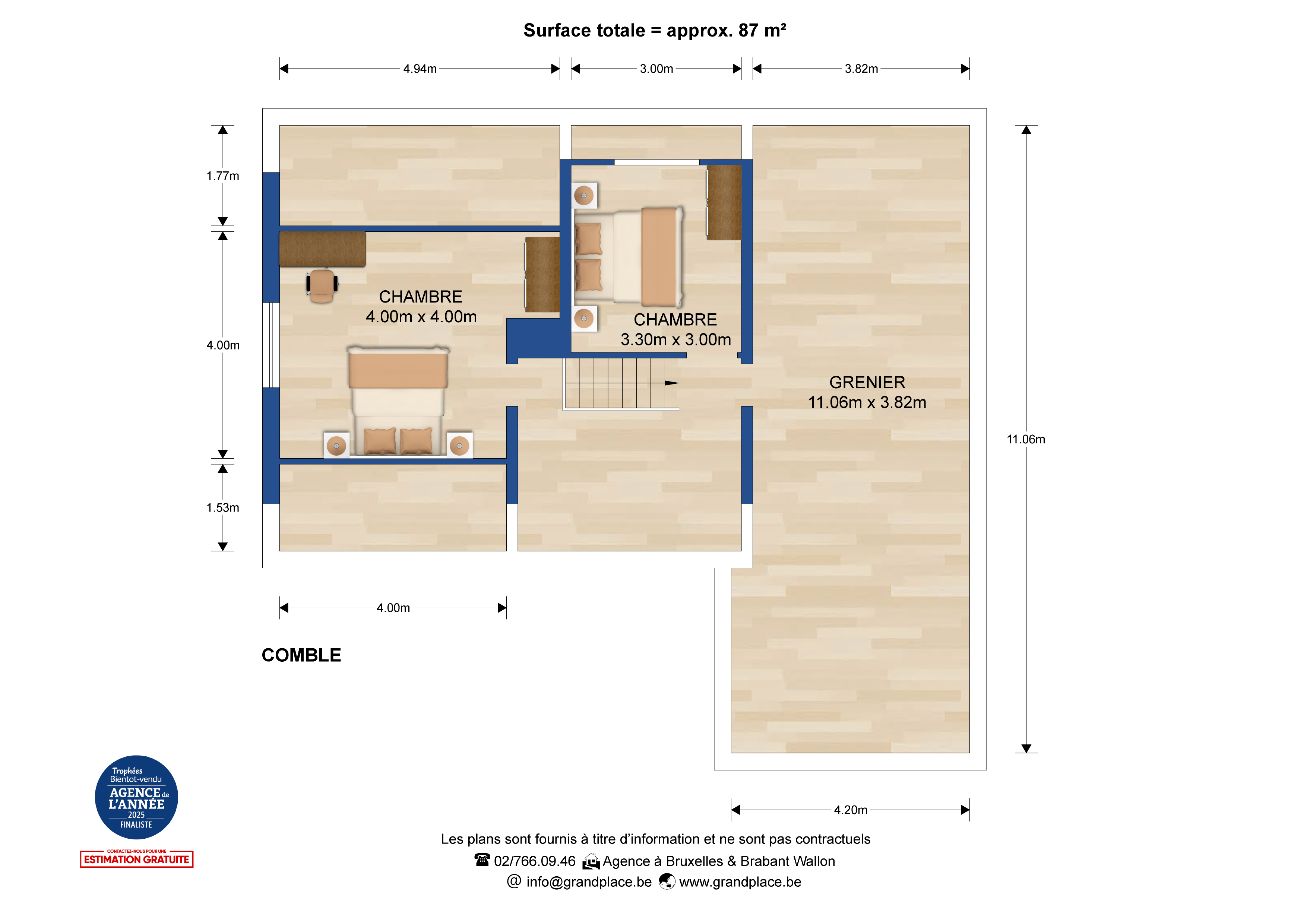 Située dans un quartier authentique & calme de Genval, construite en 1970. Elle vous offrira tout le confort dont vous rêvez, à seulement 23min de l'entrée de Bruxelles. Avec ses 187 m² de surface & son terrain de +/-5,62 ares S/O, elle dispose de nombreux atouts : un grand salon avec feu ouvert, une cuisine équipée, 4 chambres, ainsi qu’une salle de bains et un WC séparé. Le sous-sol comprend une chaufferie/buanderie, caves & un garage pour 2 voitures en enfilade avec encore une place de parking devant celui-ci. Le gros point fort de la maison ? Son jardin plat sans vis à vis avec une orientation SUD OUESTdonnant du soleil toute la journée et tard en soirée. Le grenier aménageable en salle d'eau, vous offre un potentiel supplémentaire. Infos & visites : 02/766.09.46 - info@grandplace.be